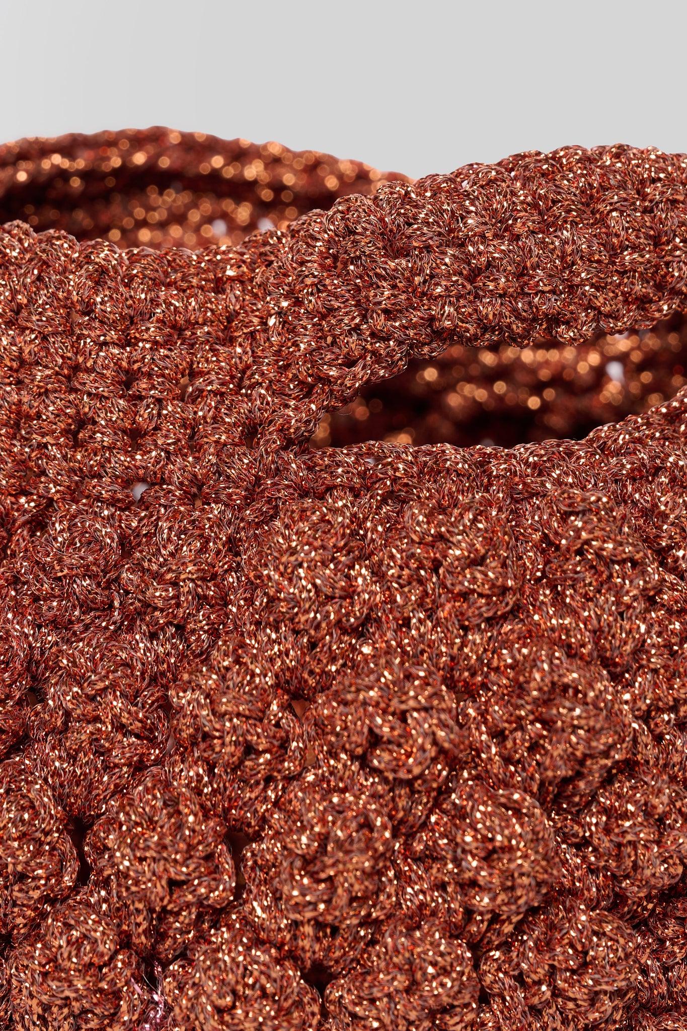 Borsetta a mano in lurex lavorata a uncinetto.