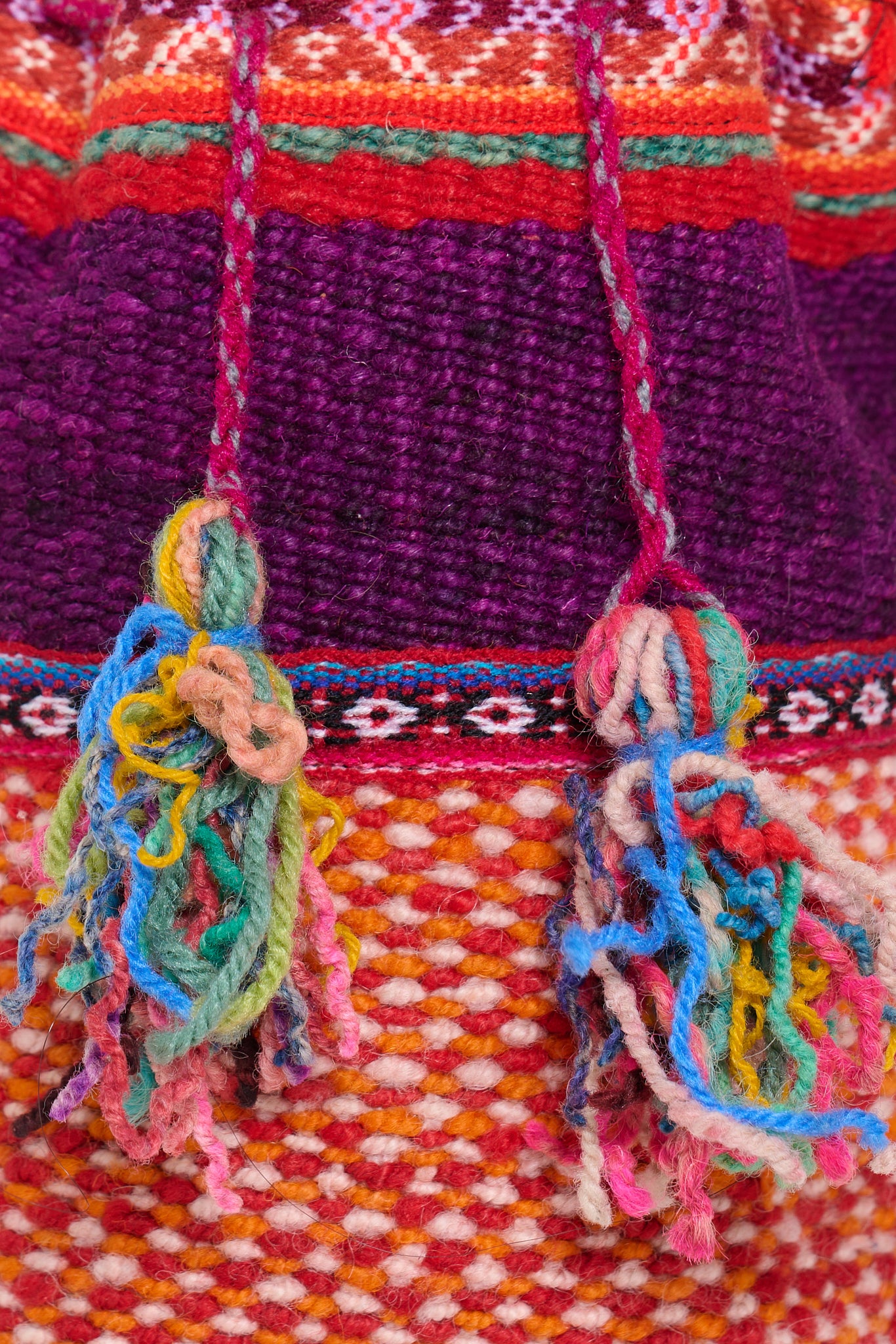 Secchiello in lana multicolor, interamente realizzato a mano dalle donne artigiane del Perù, specificamente della regione del Cuzco.