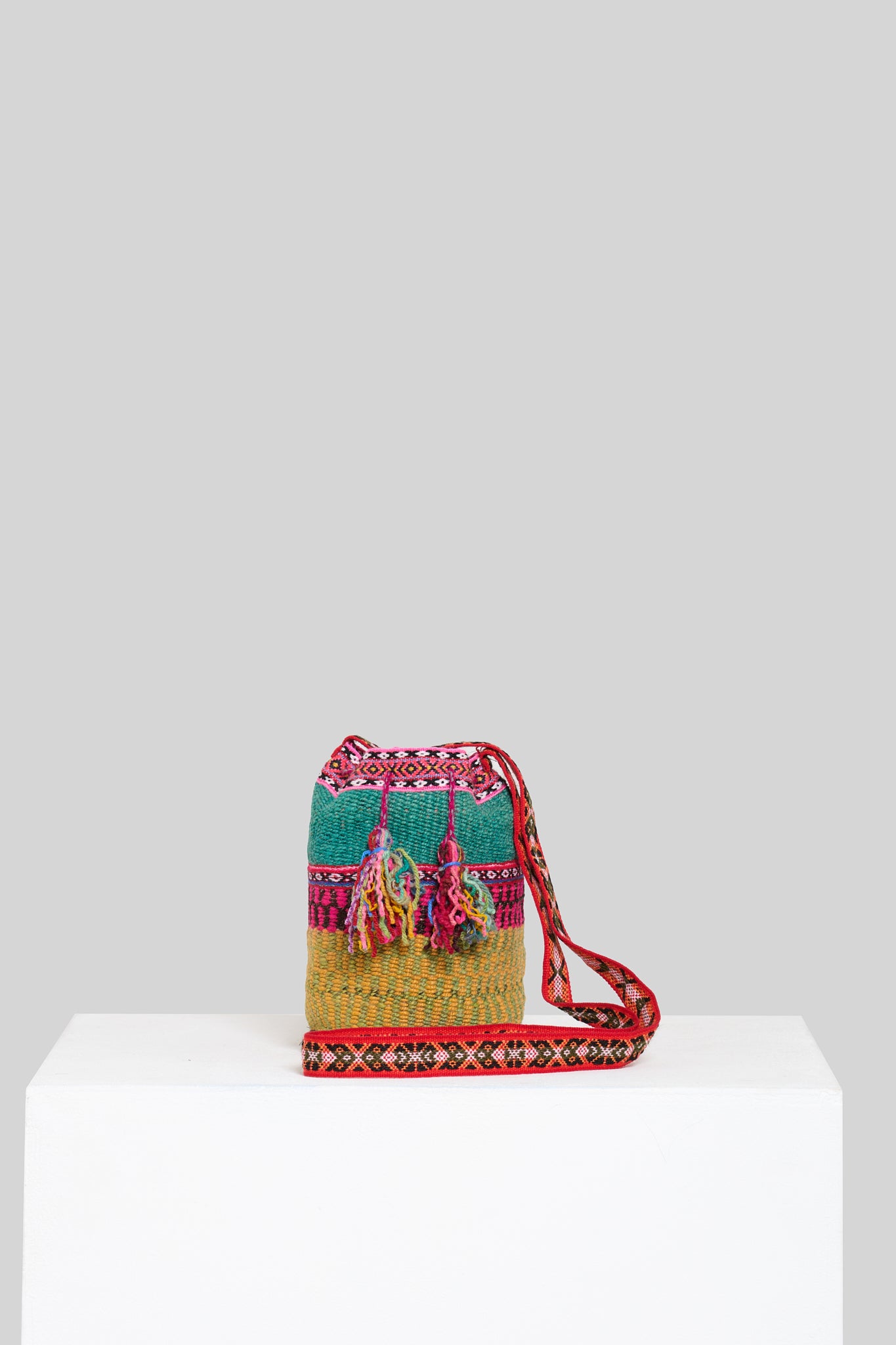 Secchiello in lana multicolor, interamente realizzato a mano dalle donne artigiane del Perù, specificamente della regione del Cuzco.